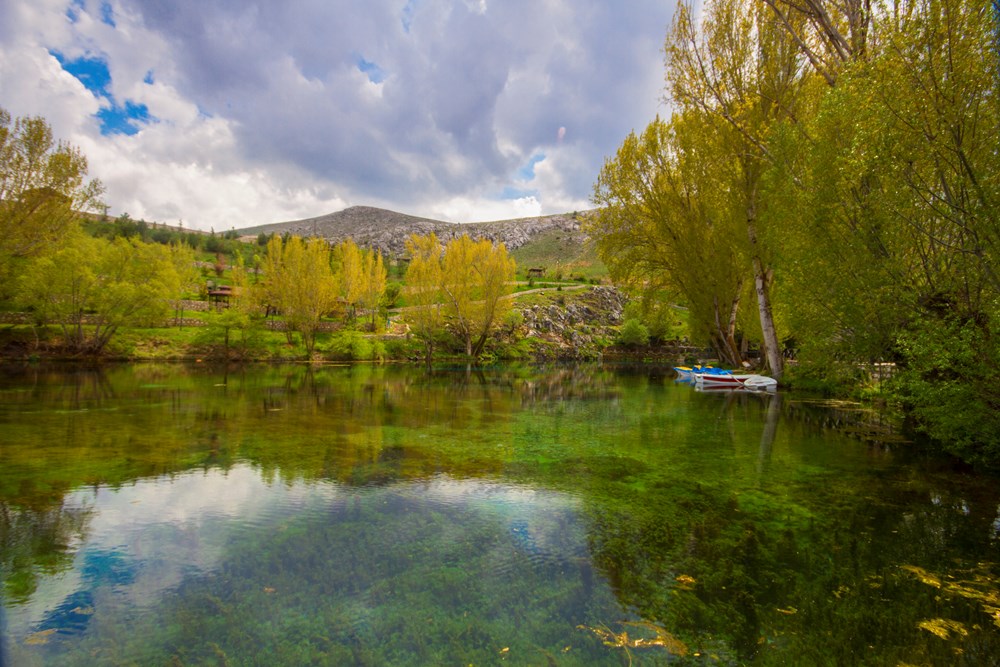 Adeta bir akvaryumu andıran temizliğin ve berraklığın en büyük sebebi gölün hemen her yerinden sürekli kaynayan sular.